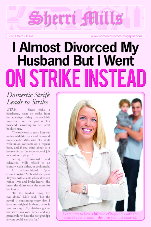 I freely admit that I DO judge books by their covers, and one that caught my eye was “I Almost Divorced My Husband But I Went on Strike Instead,” by Sherri Mills. Before anyone gets all up in arms, let me just say that this morning alone I have changed a set of pee-soaked sheets, done 3 loads of laundry, attempted to rid my kitchen of hundreds of ants, and cleaned up an accident the dog had on the floor — #2, no less! (After dealing with a potty-training toddler, that’s just adding insult to injury.)