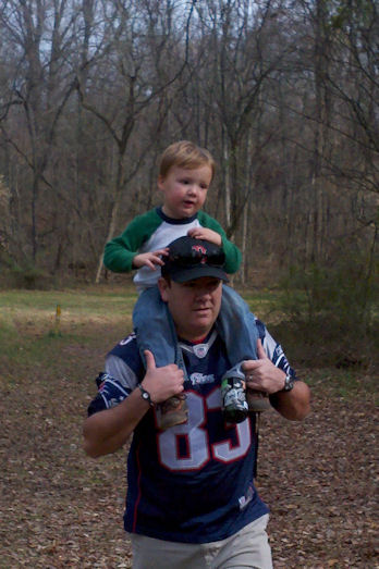 My SIL noted that one of her hiking buddies jogs up mountains wearing a 20-lb. weighted vest. I’d like to see him try carrying a 37-lb. squirming passenger on his shoulders who’s pulling your hair and grabbing passing tree branches.